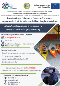 Zgłoszenia przyjmujemy do 03.08.2025 r. telefonicznie 23 661 3161 lub mailem: biuro@lgdpm.pl
